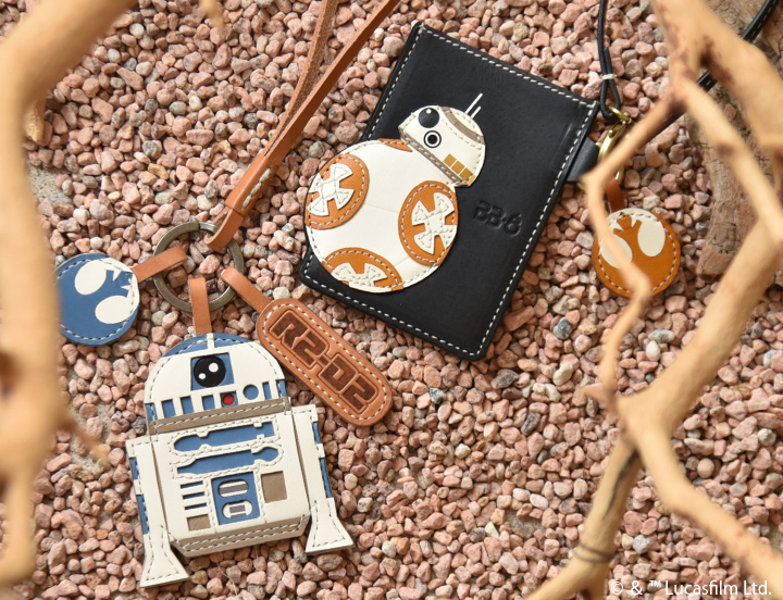 gentenからは、登場キャラクターの中でもファンの多いアストロメク・ドロイド「R2-D2」のチャームと「BB-8」のパスケースが登場です。作中での愛らしさをそのままに、職人の精緻な手仕事で息吹を吹き込みまれています。