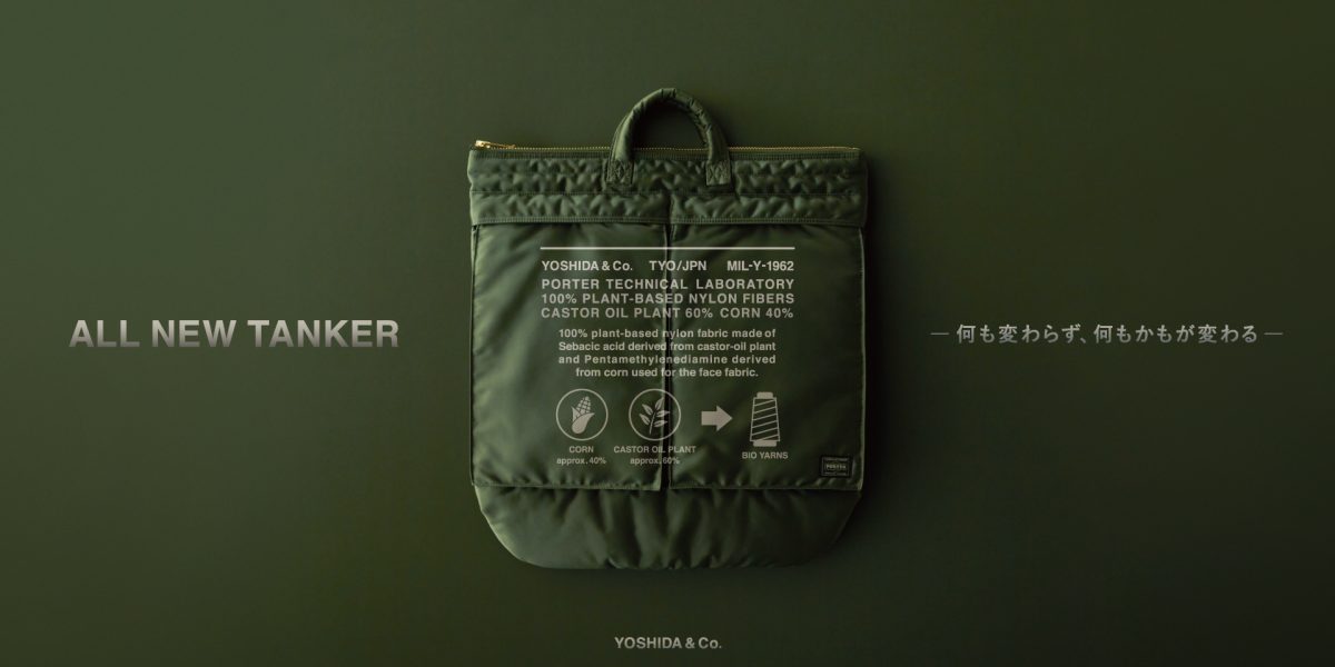 新TANKERに採用した100%植物由来ナイロン(東レ製「エコディアN510」)の由来資源は「トウモロコシ」と「ヒマ」です。世界で初となる100%植物由来ナイロンの量産化は、先端材料の開発で世界をリードする合繊メーカー東レとの協業により成功。