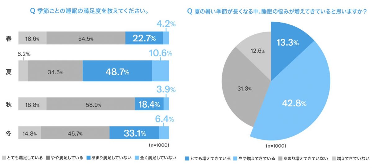 気象庁の3か月予報(6月~8月)によると、今年も全国的に気温は高くなると発表されており、厳しい猛暑によって、睡眠の悩みを感じるシーンが増えることが予想されるので、今年の夏も心配です。