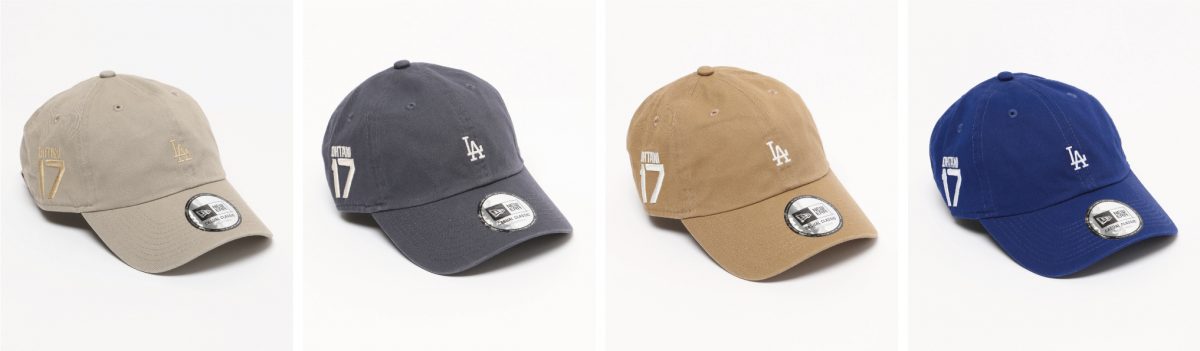 キャップはMLBの公式サプライヤーとしても知られる「NEW ERA(ニューエラ)」に特別にオーダーしたもの。フロントにLAロゴを配した、NEW ERAのインラインでも人気を博しているシリーズのサイド部分に「OHTANI17」の刺繍を施した特別デザインになっています。