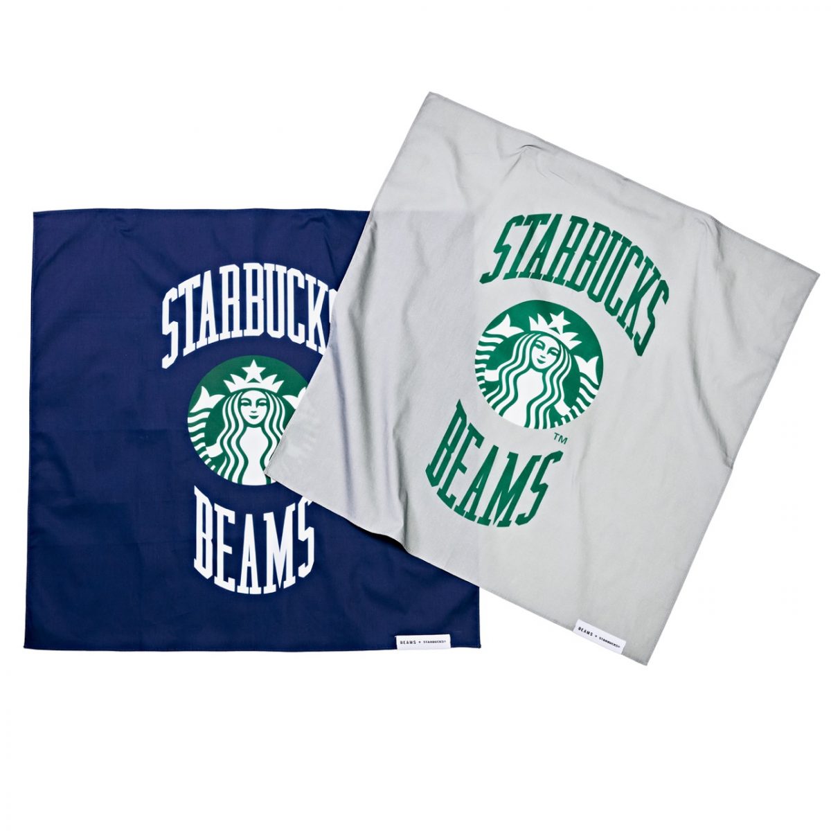 BEAMSの原点といえる“アメリカンカレッジ”の要素を取り入れ、トラッドな雰囲気を持つオリジナルのカレッジロゴと、ペナントロゴをインスピレーションにデザインを制作。おなじみのタンブラー、ステンレスボトルとマグカップのコーヒーグッズ、スターバックス カードに加えて、コーヒーを飲みながら使えるスローケット(大判のブランケット)や、ランチョンマットにもなるバンダナが揃います。