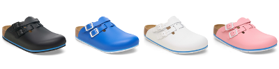 BOSTON PRO、TOKIO PRO、KAY PROはアッパーのナチュラルレザーにPUコーティングを施し、水や油跳ね・熱に強く、さらに通気性にも優れます。耐滑性のあるTPU製アウトソールには、ビルケンシュトックならではのボーンパターンに加えて、横方向に走らせたミゾの構造で水はけのよさを追求。バックルは洗いやすく、清潔に保つことができます。それぞれに異なる仕様のストラップをもつ三つのモデルから、厨房や医療現場など様々な職場で最適なスタイルを選択可能です。