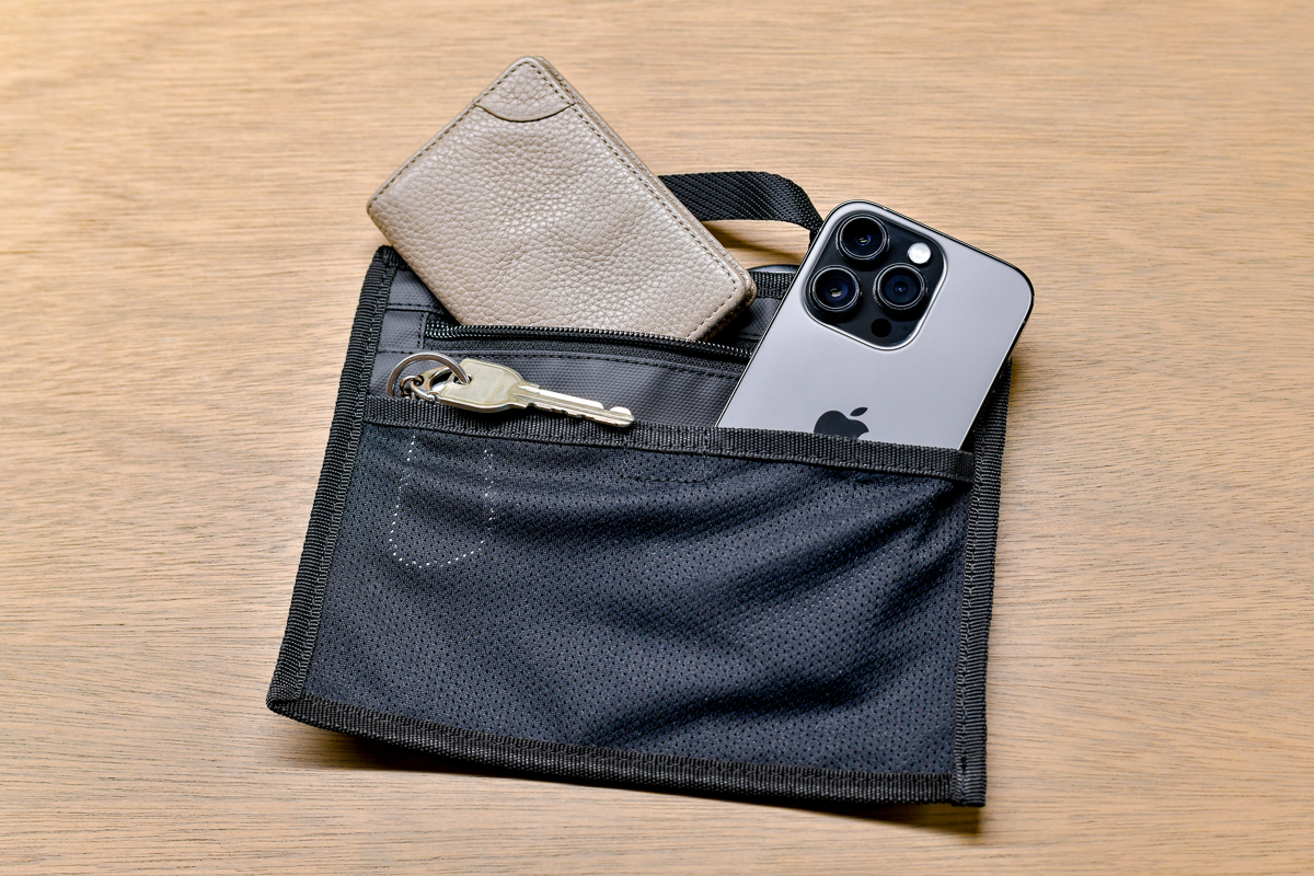 脱着可能なオーガナイザーポーチは独立して使用することができるため、避難所でのミニバック代わりとして役立ちます。スマートフォンやウォレット、鍵などの貴重品の持ち運びに便利なサイズ感です。(野田)