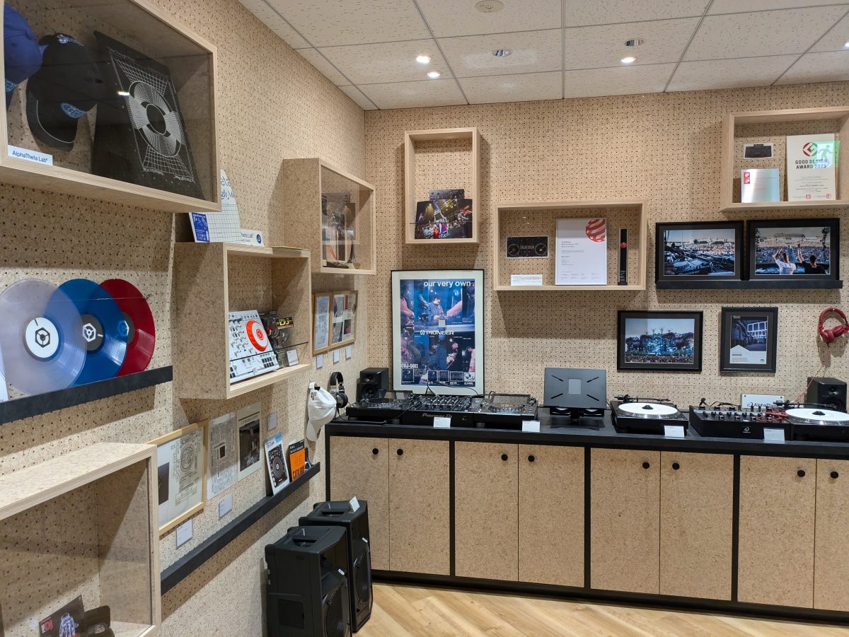 DJ機器の世界トップシェアを誇る、AlphaTheta。オフィスの受付や通路さえ、音楽制作を愛する人なら「おっ」とトキめく空間になっています。
