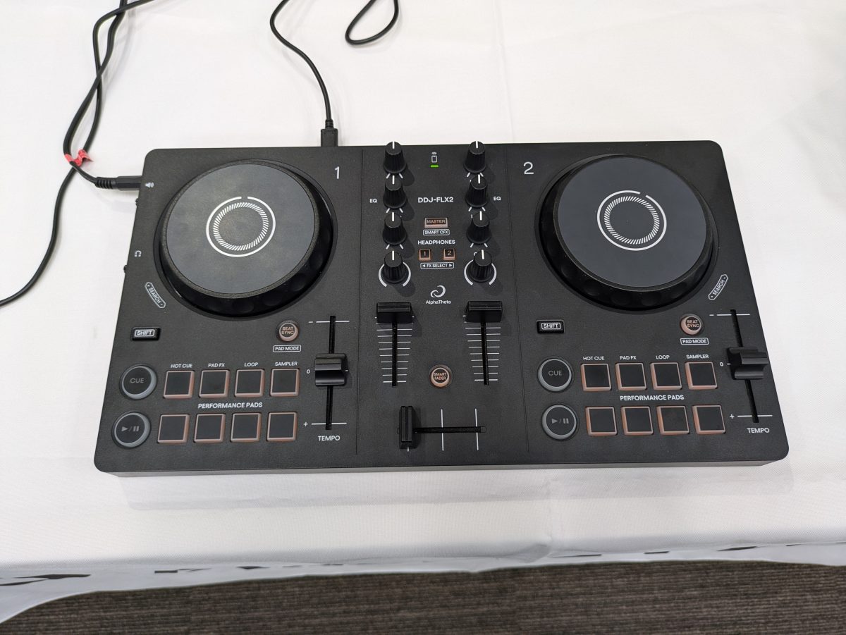 まずは、誰でも簡単にDJになれる「DDJ-FLX2」から。商品企画部・新井庸介さんが、実際に目の前で使って見せてくれました。DJ機器と聞くと「複雑そう」と感じる人ほど、イメージが覆されるかもしれません。