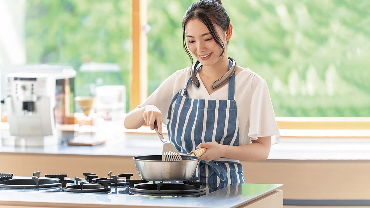 首にかけるだけで、音声による生成AIとの自然なコミュニケーションが実現するウェアラブルデバイス。ユーザーの問いかけに対し、内蔵のマイクとカメラで周囲環境を把握して、音声で応答。利用者の生活を様々なシーンでサポートしてくれる。