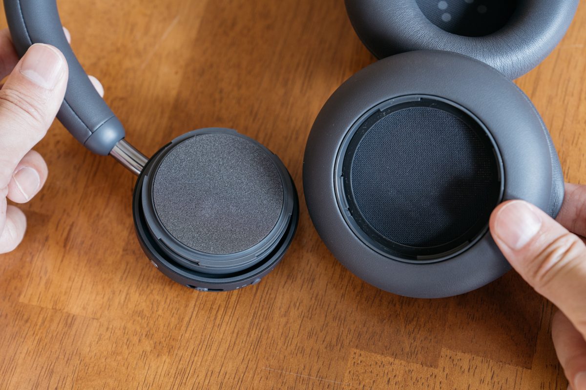 また、このイヤークッションは取り外すこともできます。別売りで用意されている、異なるカラーの専用イヤークッションに交換することで、ファッションとしての幅も出てきます。モジュラー式のアイデアはDysonのヘッドホン「Dyson OnTrac」に近いです。