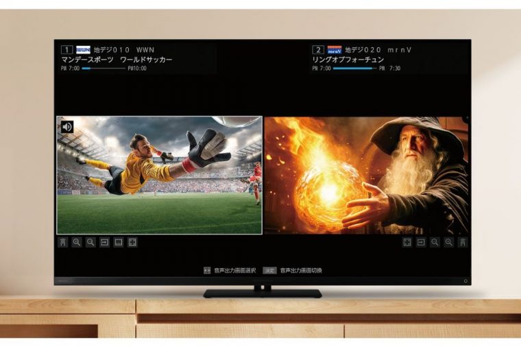 また、新モデルではAIでコンテンツの音声成分を認識して、音声と環境音のバランスを調整が可能に。コンテンツの環境音などを低減し、人の声を聞きやすく調整することができます。スポーツなどのコンテンツにおいては、解説の音声を低減する一方で、スタジアムの大歓声を強調し臨場感を高めるなど、好みに合わせた演出が可能です。