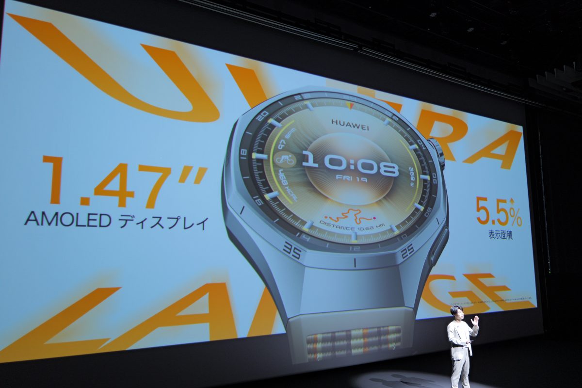 盤面は約1.47インチのAMOLEDディスプレイで、最大輝度は3000nits。前モデルから画面占有率が5.5%増加したほか、最大輝度も向上しています。またディスプレイの表面は傷がつきにくいサファイアガラス、ウォッチのボディは航空機にも使用されているチタン合金、腕と設置する面はセラミッククリアケースを採用しています。