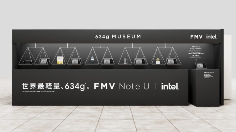 イベントスペースでは、約634g の「FMV Note U(UX-K3)」と同重量の様々な商品を展示する「634gミュージアム」も用意され、世界最軽量のパソコンの軽さを気軽に体験できます。