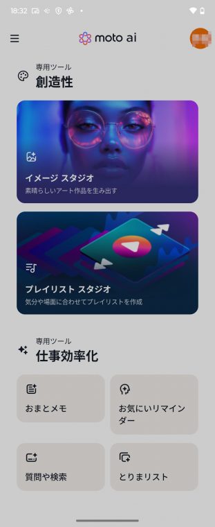 対話型AIの「質問や検索」、画像生成の「イメージスタジオ」など、ほかのAIでもできることはありますが、気分に合わせた音楽プレイリストを作成してくれる「プレイリストスタジオ」や、不在着信やメッセージなどの通知を要約して教えてくれる「とりまリスト」など、独自の機能も用意されています。