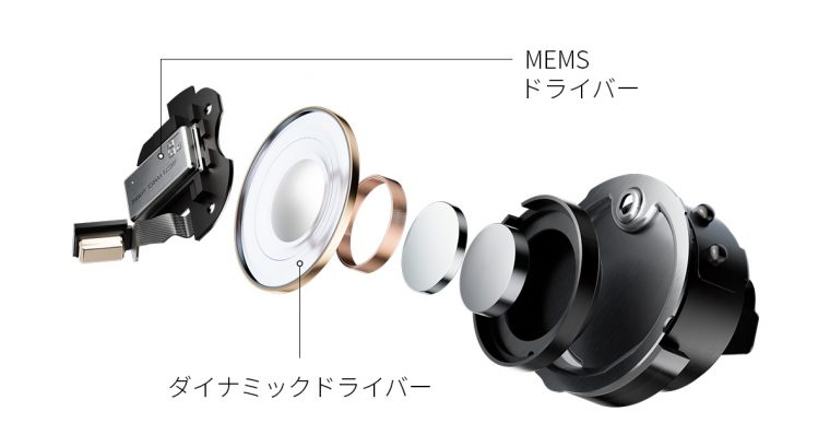 低域を担うダイナミックドライバーには、内部にデュアル銅線を採用したPU+PEEK素材のφ10mm複合振動板を採用、重厚さを漂わせつつもキレがある低音を描き出します。