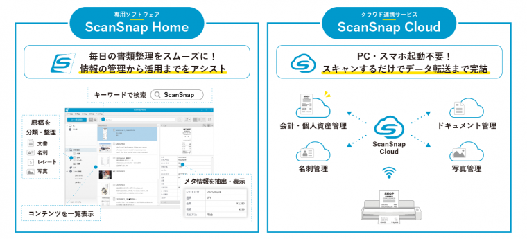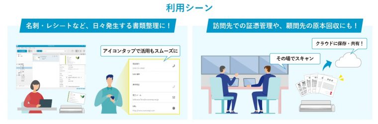 さらに、様々なクラウドサービスにスキャンデータを直接保存するサービス「ScanSnap Cloud」を利用すると、原稿をスキャンするだけで、原稿種の自動判別からクラウドサービスへの保存までを、PCやスマートフォンを介さずに完結できます。