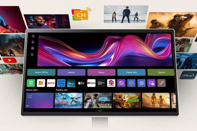 本製品は、LG独自のwebOSを搭載し、ネットに接続するだけでネット動画やサイトのブラウジングが行えるスマートディスプレイ。最大の特徴は、画面の位置を自在に調整できる可動式フレキシブルスタンドを採用していることで、これによりデスクワークからソファに座っての動画視聴まで、オンオフ問わず幅広いシーンで活用できる。