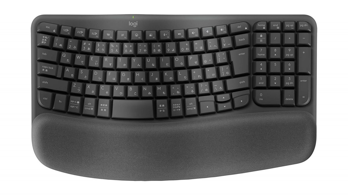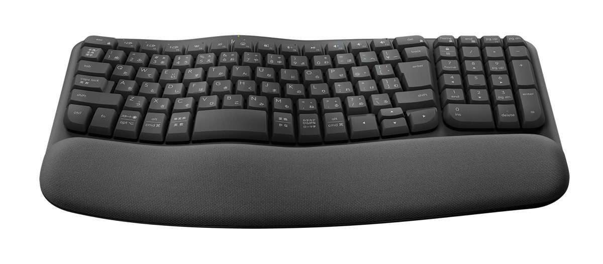 人間工学の専門家が設計。ハの字型のキーレイアウトと曲線状のデザインで腕を自然な角度に保つ。手首をサポートする形状記憶素材のパームレストを搭載し、同社のパームレスト非搭載キーボードにくらべ、57%高い手首サポート力を誇る。最大3台のデバイスに同時接続可能。