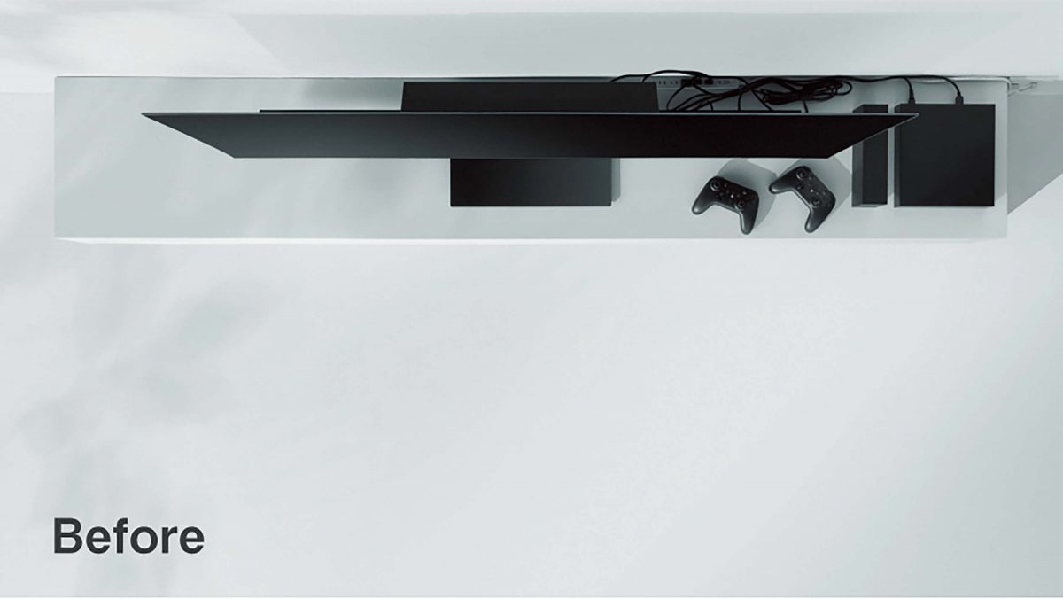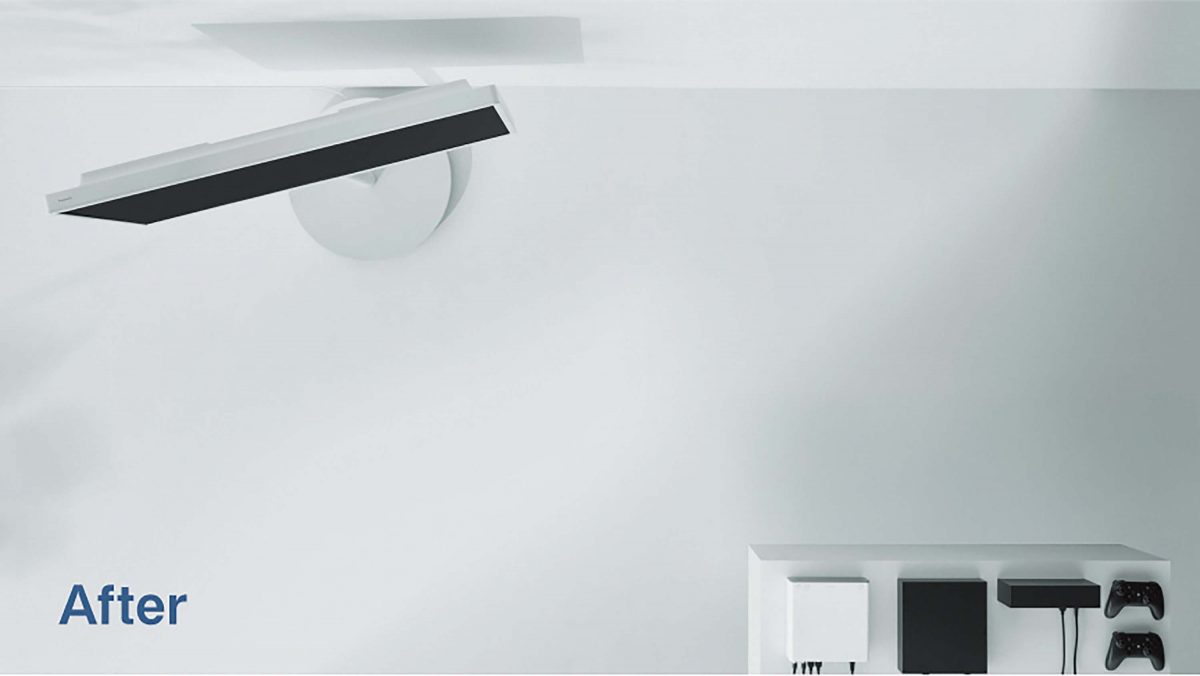 石膏ボードの壁にも細いピンのみで簡単に固定可能で、壁と一体化しているかのように設置できる。チューナー部とディスプレイが別で、チューナー部には接続機器の映像・音声をモニターにワイヤレス伝送できる「Wireless Connect」を搭載している。