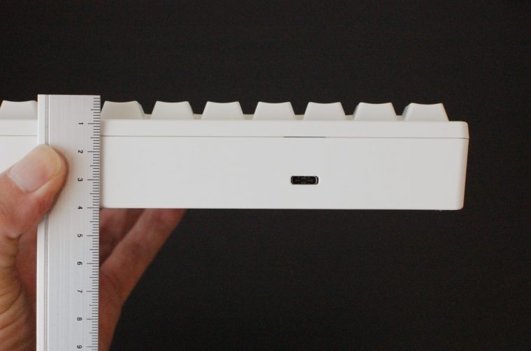 実物を見てまず感じたのは、程よいコンパクトさ。フルサイズのキーボードと比較すると、ファンクションキーがないぶん縦のサイズが特にコンパクトで、どのキーにも無理なく手が届く一方、窮屈さは感じない絶妙なサイズ感です。