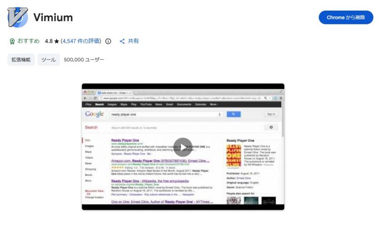 そこで、Chromeウェブストアにある「Vimium」という拡張機能を導入してみました。