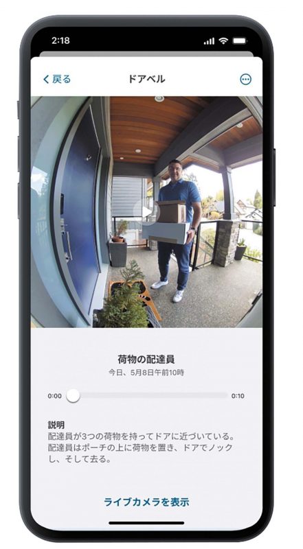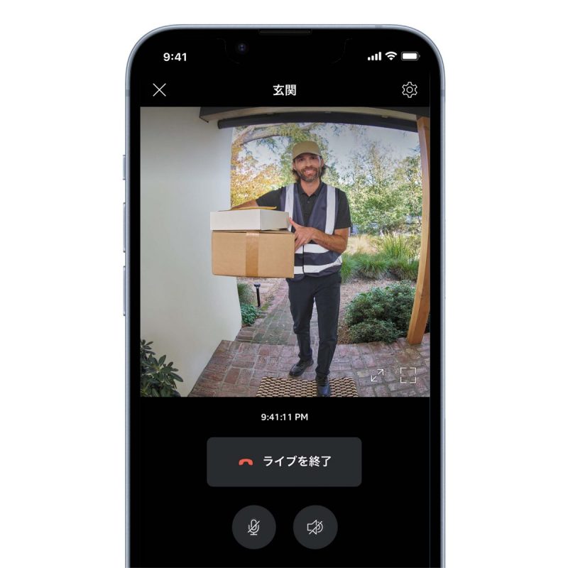 呼び出しボタンに加え、センサーが動きを検知すると自動で録画を開始してスマホに通知が届く。応答はスマホアプリで行う。バッテリー式で、強力粘着シールでも取り付けられるので、賃貸マンション・アパートでも利用可能だ。