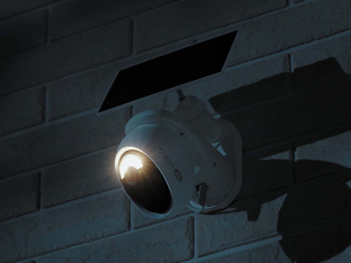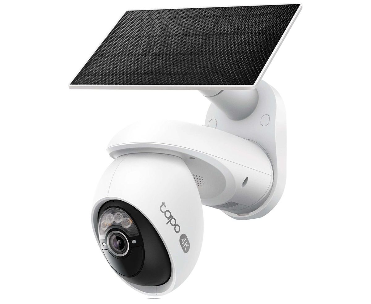 ソーラーパネルとカメラのセット。カメラは4K800万画素の解像度と18倍まで拡大可能なデジタルズームを備える。自動追尾機能を搭載し、人物などを動きを検知すると360度広範囲に追い続ける。指定したポイント間を巡回する設定も。
