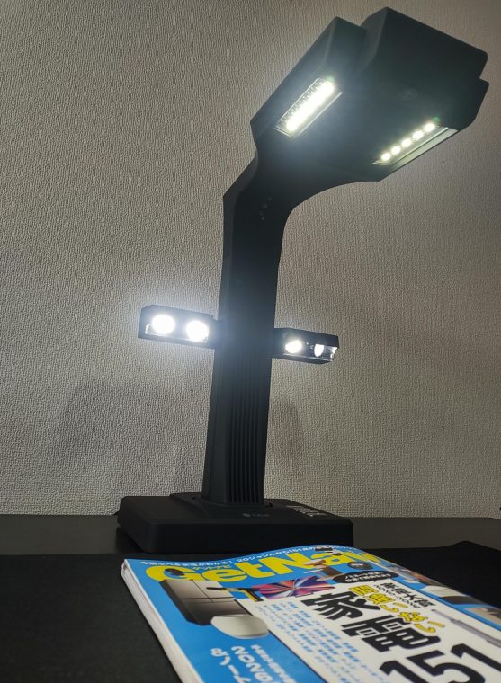 また、背面には取り外し可能なサイドライトが付属しており、光沢紙の反射を軽減できるなど、ハードウェアの完成度は極めて高い印象です。