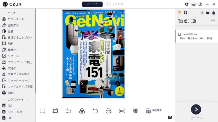 本機種はフラッグシップらしく豊富な機能が搭載されていますが、中でも充実しているのは非破壊で書籍をスキャンするための機能。ここでは、主な機能を3つ検証します。