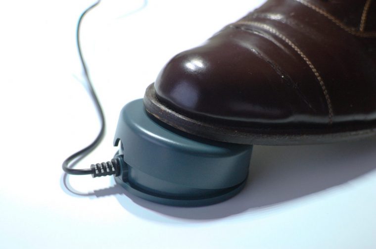 指サックで本を押さえながらスキャンすることが多いので、本製品にはスキャンのスイッチとして、フットペダルが付属しています。