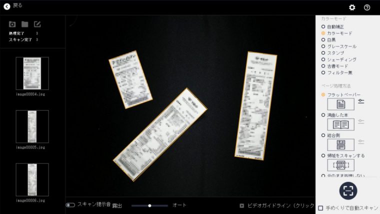 例えば、紙のレシートや名刺などを一気にデータ化する際などに便利そうです。乱雑に斜めに置いても傾きを補正してくれるので、並べ方に神経質になる必要はありません。