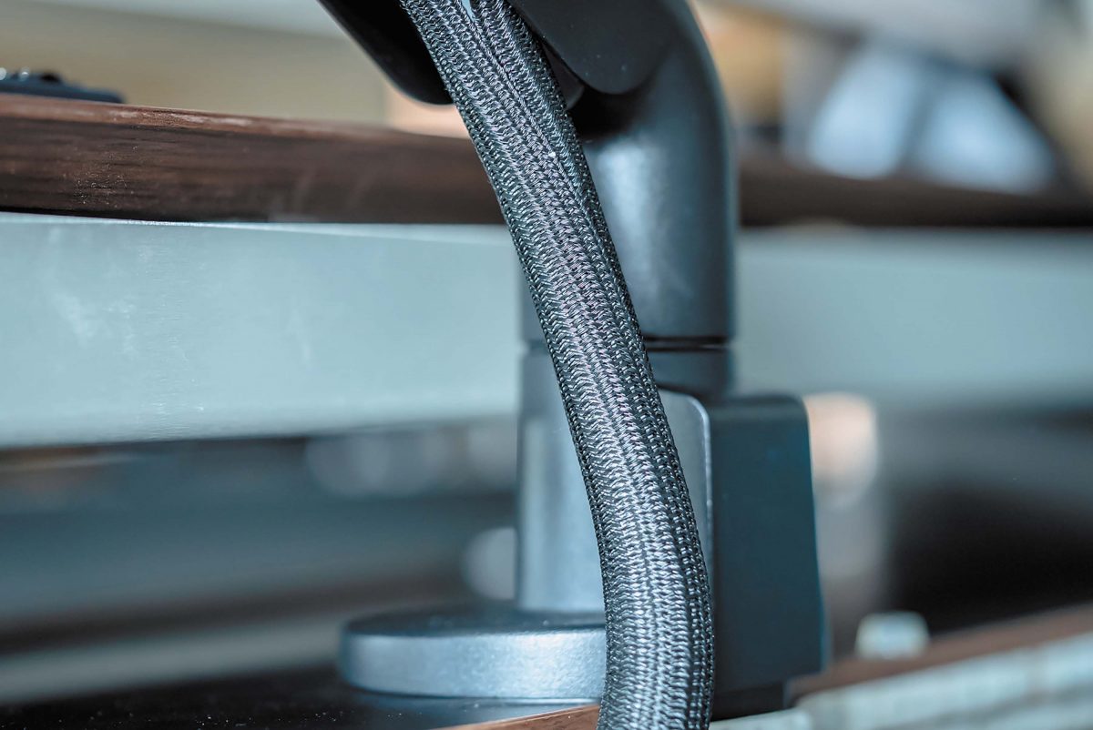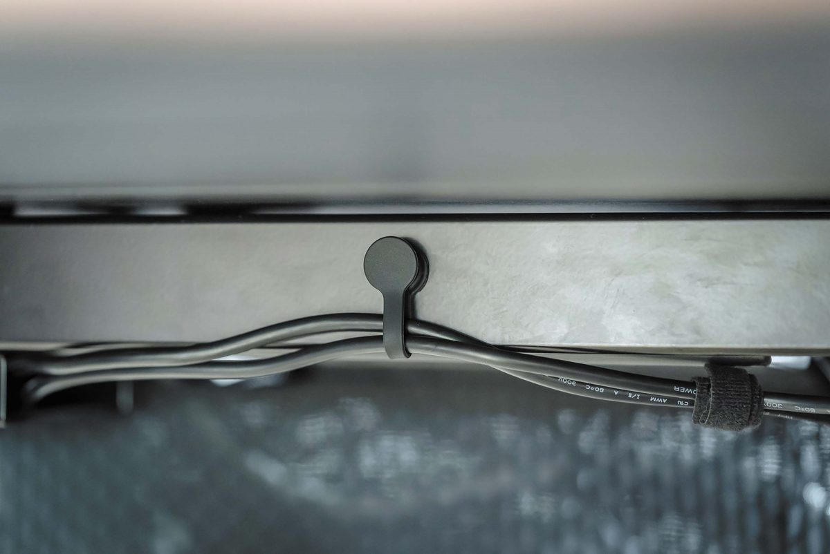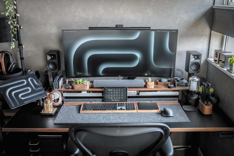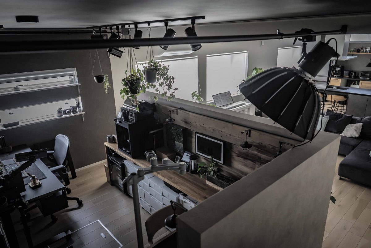 「リビングの一角にデスクを置いているため、部屋になじむような暖かみのあるアイテムを揃えたり、機材っぽさを緩和する工夫を施したりしています。電動昇降デスクの天板はPREDUCTSの「DESK STUDIO」を採用。天板裏にレールが備わり、様々なモジュールを設置できます」(難波拓斗さん)