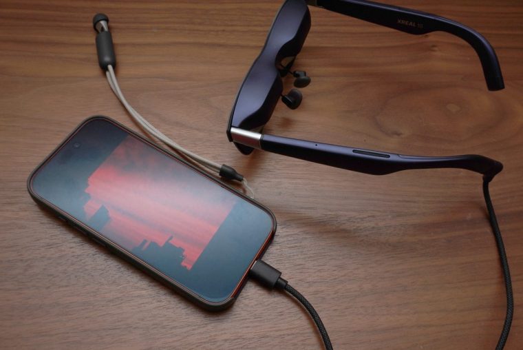 さっそく、XREAL 1SをiPhone 17 Proに接続してコンテンツを体験しました。