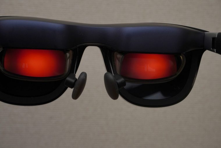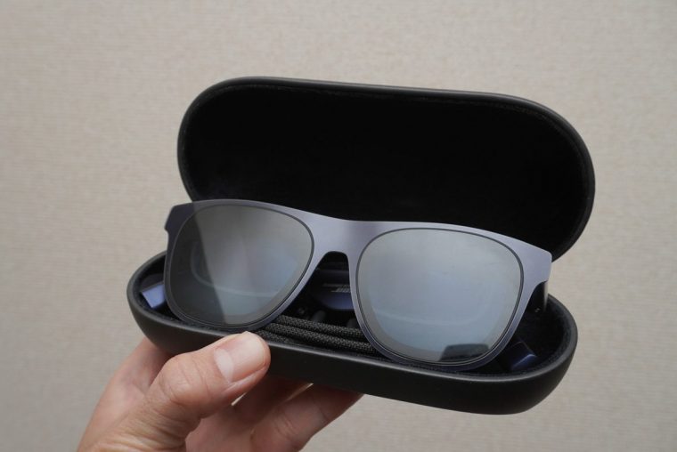 ふつうのサングラスとほとんど変わらない大きさだからこそ、メガネの上からかけて使うことが難しいサイズ感とも言えます。メガネの方は別途コンタクトレンズを装着するか、あるいは本機専用の度付きインサートレンズを東京都内の眼鏡店「JUN GINZA」でオーダーメイドする方法もあります(追加費用はかかりますが……)。