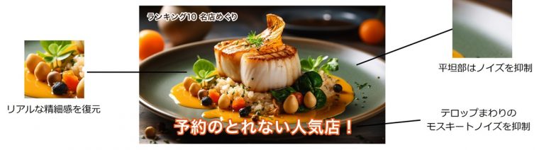 ネット動画向けには、サービスごとに最適な画質処理を行う「ネット動画ビューティ」を採用しています。画質が混在しがちなネット動画でも、コントラストや精細感を高め、高画質で楽しめます。また、「地デジビューティ」により、文字まわりのノイズを低減し、クリアな映像を描き出します。