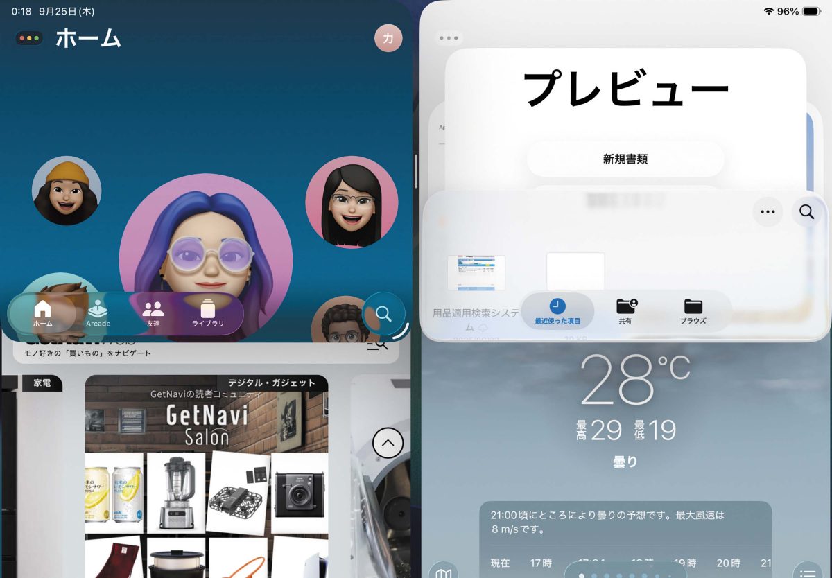これまでも「ステージマネージャ」を利用して複数アプリ間の移動は可能だったが、画面に表示されるアプリはひとつのみだった。新OSでは、画面上に最大4つまでのアプリ画面を同時に表示可能。表示サイズも任意で変更できるため、アプリの遷移が飛躍的にスムーズになった。アプリの表示範囲は任意に変更できるので、よく使うアプリを大きく表示させることも可能だ。