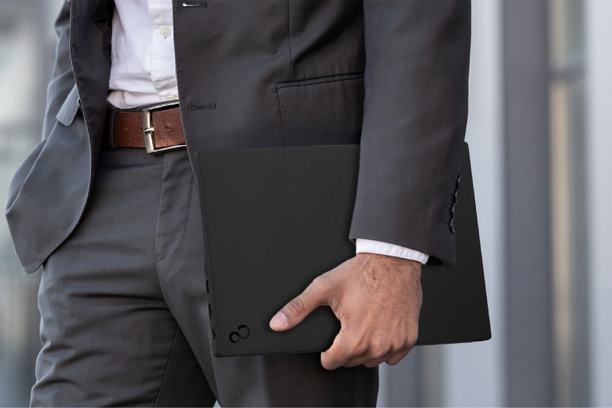 本体の重量はカラーで違っており、ピクトブラックのモデルは約876g、シルバーホワイトのモデルは約886g。バッテリーの持ち時間とその軽量さから、FMVのモバイルノートPCらしく持ち運びに適したモデルといえます。