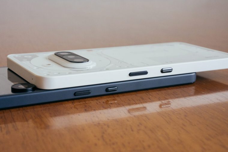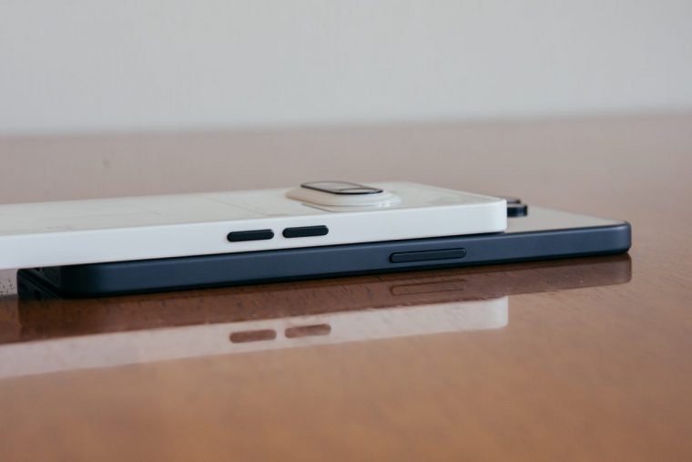 左側面にはボリュームキーが。Phone (3a) Liteのボリュームキーは一体型です。