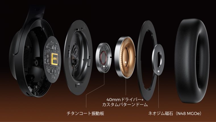 音の決め手となるドライバーには、カスタム設計のドーム構造を設けたφ40mmチタンコーティング振動板を採用。トランジェント性能の向上と強力なネオジム磁石の採用により、俊敏な音の立ち上がり/立ち下りを実現するとともに、微細な音のニュアンスまで忠実に再現します。