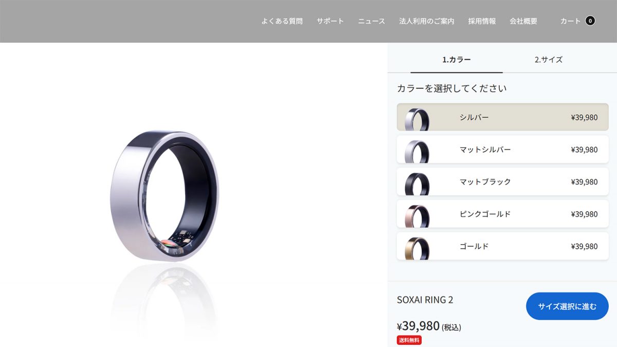 公式オンラインストアでの価格は39,980円(税込)。幅広い機能を利用するために、サブスクリプションサービスを展開するスマートリングもありますが、SOXAI RING 2は製品を購入すればすべての機能を使えるのもポイントです。