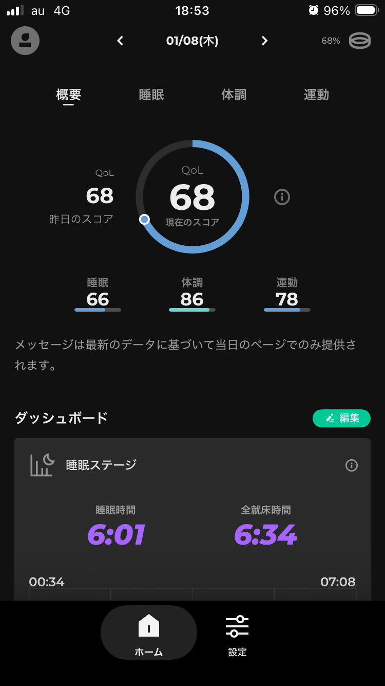 大事なのはSOXAI RING 2を使って健康改善につなげられるかですが、今回使っている期間ではそこまで至りませんでした。理由は2つあり、ひとつは睡眠のスコアがそんなに悪くなかったからで、もうひとつは「そもそも悪くない睡眠状態を改善する」のが難しいためです。