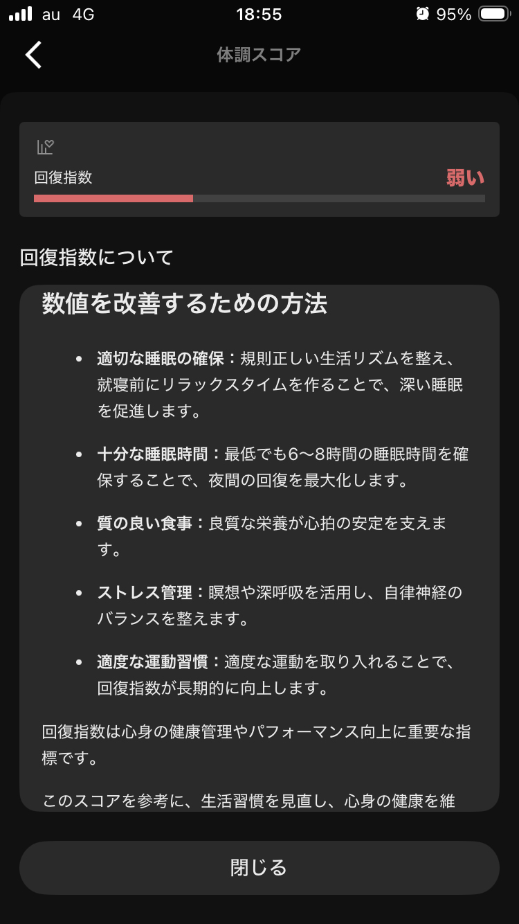 欲をいえば、取得したデータを分析してパーソナライズされたアドバイスをもらえるようにしてもらえると、より改善に取り組みやすいと感じました。このあたりはアップデートに期待したいところです。
