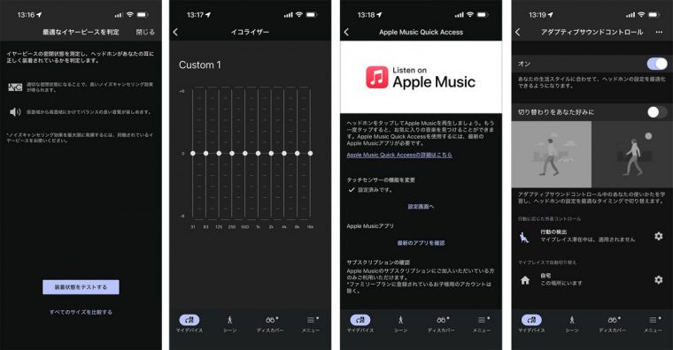 本格的に使い始める前に、本機専用のSoundConnectアプリの「デバイス設定」メニューから、「装着」の中にある「最適なイヤーピースを判定」を済ませるべきでしょう。耳に合う最適なサイズのイヤーピースを装着すれば、WF-1000XM6のサウンド、ノイズキャンセリングの遮音効果が最大化されるからです。