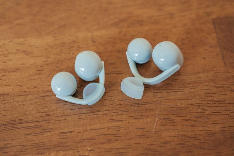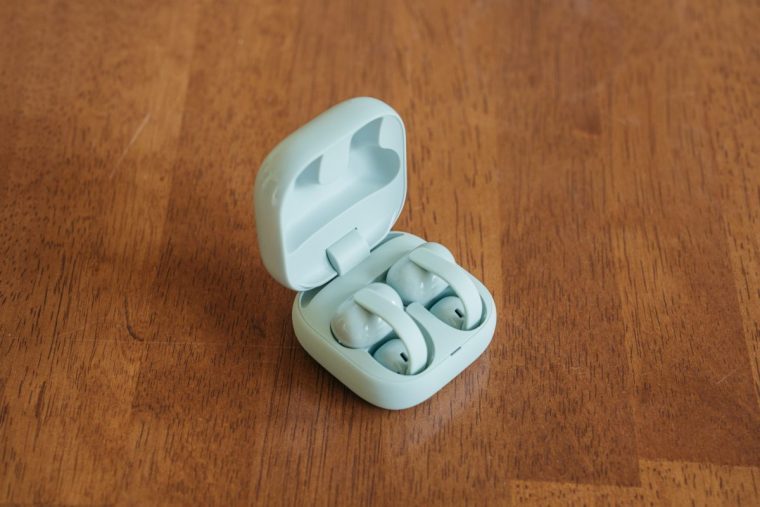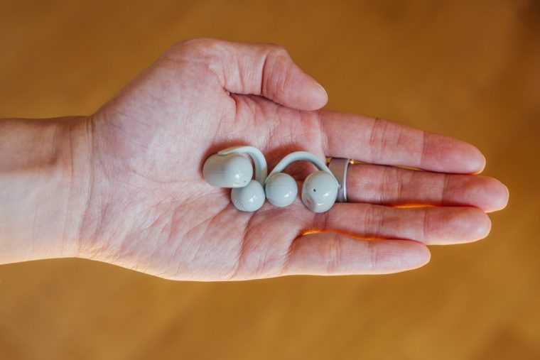 また、耳をふさがずにイヤホンを装着する方法もひとつではありません。耳にかけるものもあれば、イヤーカフのように耳にはさみこむものもあります。例を挙げると「Shokz Openfit」は耳掛け型で、「Huawei FreeClip」がイヤーカフ型ですね。