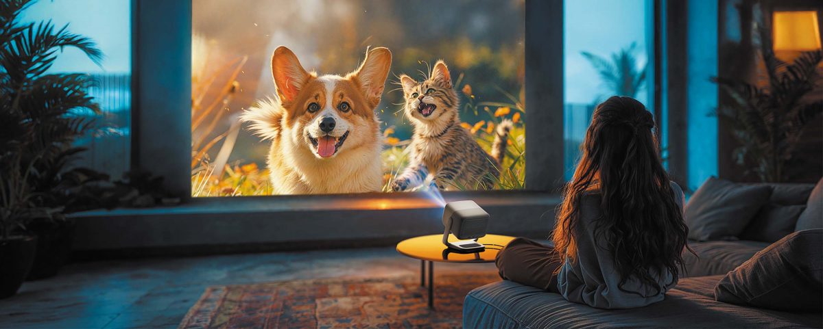 小型ながら明るく鮮やかで精細な映像を実現。カーテンを引いた日中のリビングでも快適に楽しめる。軽く女性でも片手で持ち運べ、ジンバルスタンドにより設置や天井投影もスムーズ。