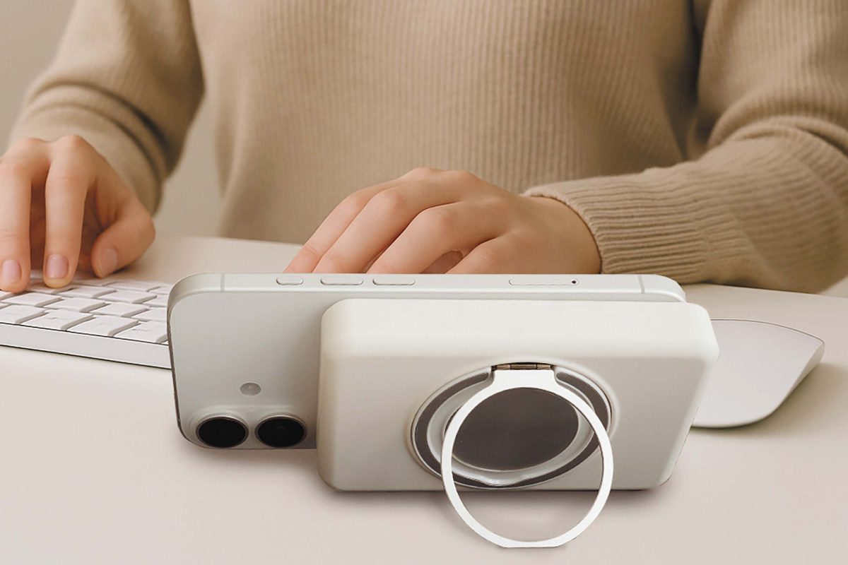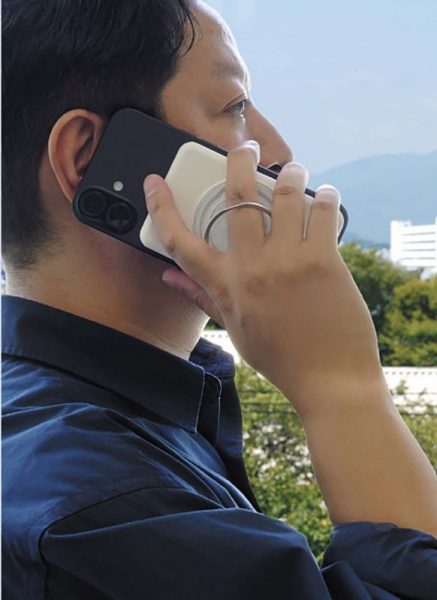 ワイヤレス充電対応の準個体電池採用モバイルバッテリー。最大15Wでマグネット吸着によるワイヤレス充電が叶う。背面にスマホリング搭載で、充電中も安定した状態で使えるのも魅力。