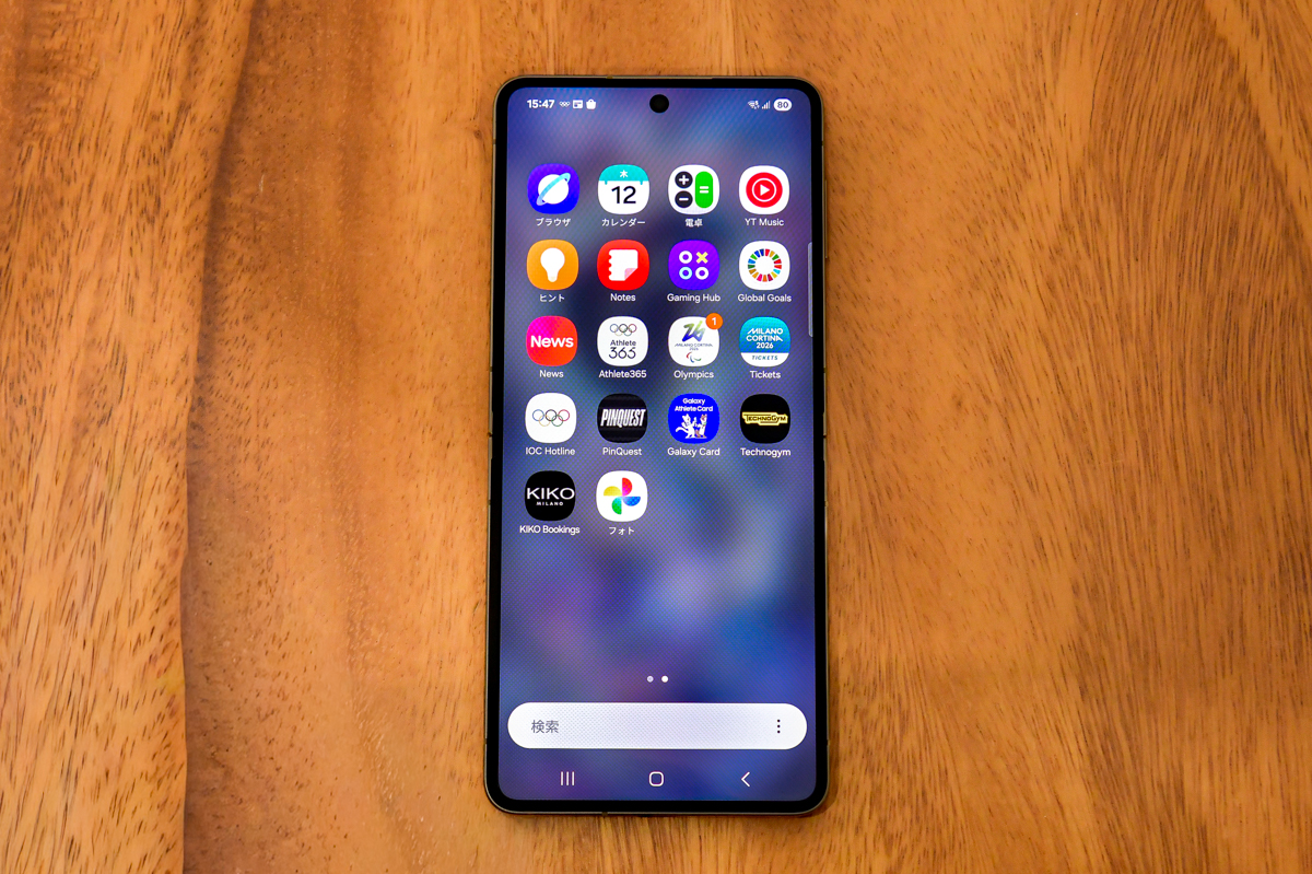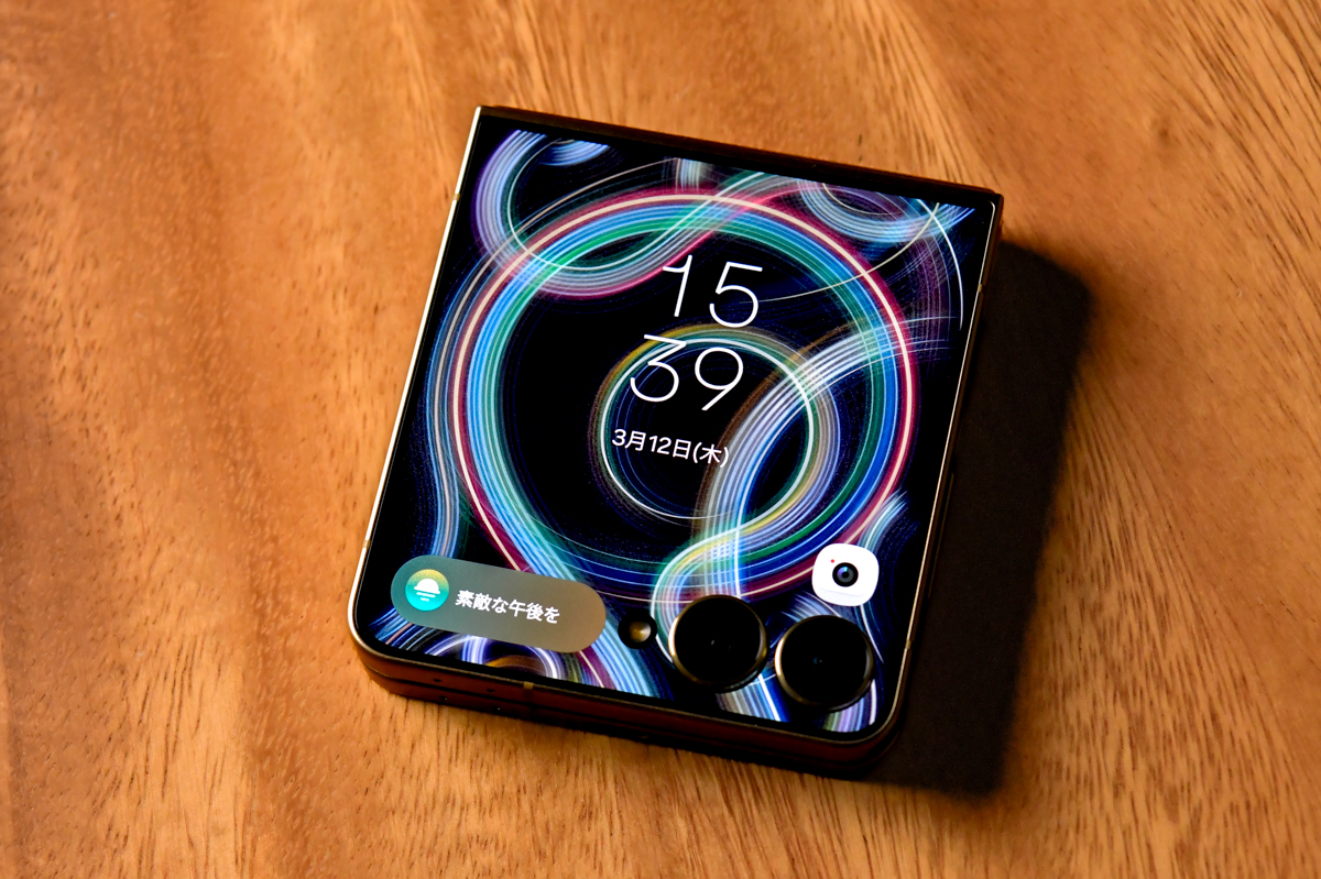 デザイン、一部アプリなどは従来モデルのGalaxy Z Flip7と違いますが、基本的なスペックは同じ。SoCはExynos 2500で、メモリーは12GB、ストレージは256GB、背面カメラは約5000万画素のメインと、1200万画素の超広角の2眼構成、バッテリーは約4300mAhです。
