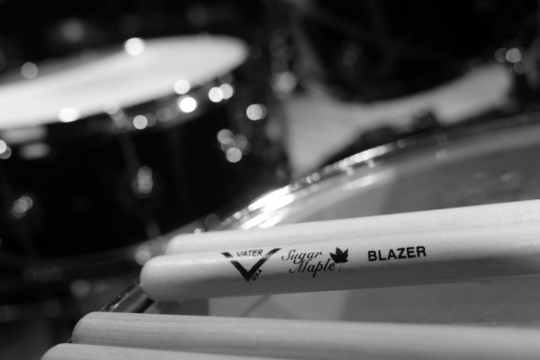 柔らかいメープル素材でできたスティックなのですが、GR IV Monochromeで撮影すると少しソリッドな印象にも感じます。ピントが合ってくれて、背景のドラムセットの柔らかい雰囲気が良いコントラストになっている好きな写真です。