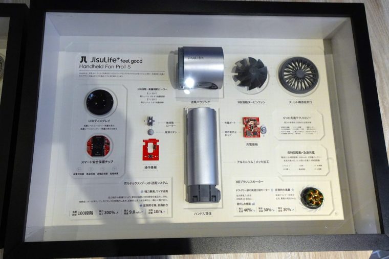 清原氏によると、同社では、研究開発チームとして空力専門家を含む約100名が従事。ブラシレスモーターなどの独自技術を駆使して、小型で高風量かつ長持ちするポータブルファンを開発。安全面では特許取得済みのモーター保護パッケージを備えるなど、現在までに700件以上の特許と1000件以上の国際認証を保有しているとのこと。