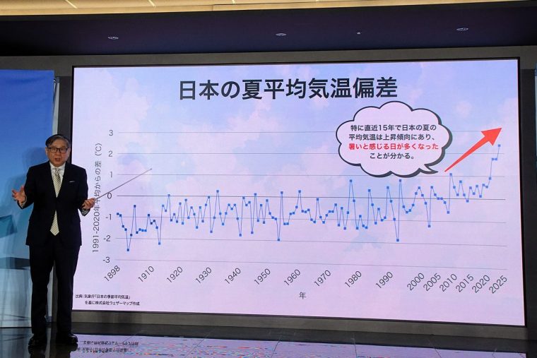 森田氏は、100年前と比較し、平均気温が1~2度上昇し、30年に1回起こる猛暑が3年連続で発生するなど、気候変動の影響が顕著であることを指摘。また、過去最高レベルの猛暑日数となった2024年に続いて今年も増加傾向にあると予測し、「熱中症対策として携帯性・風量・安全性を兼ね備えたポータブルファンを活用してほしい」と訴えました。
