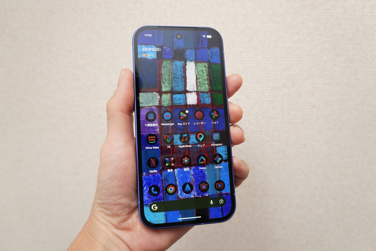 Pixel 10aも、2025年モデルのPixel 9aと同じ6.3インチの有機ELディスプレイを採用しています。本体の横幅が73mmに抑えられているので、筆者のように比較的手が小さなユーザーでも無理なく片手で操作できます。