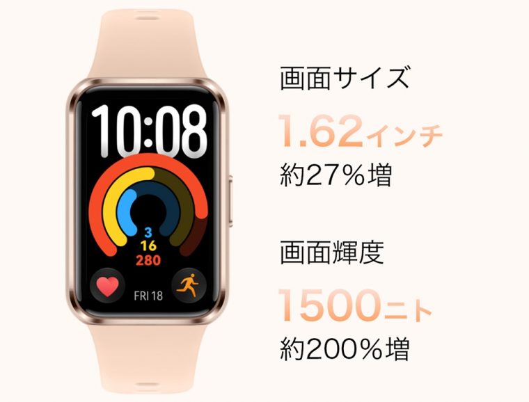 「HUAWEI Band 11」は、多機能でコンパクトなデザインながら価格を抑えたエントリーモデル。従来の超薄型・軽量の着け心地はそのままに、ディスプレイが前モデル1.47インチから1.62インチへと大きく進化しています。