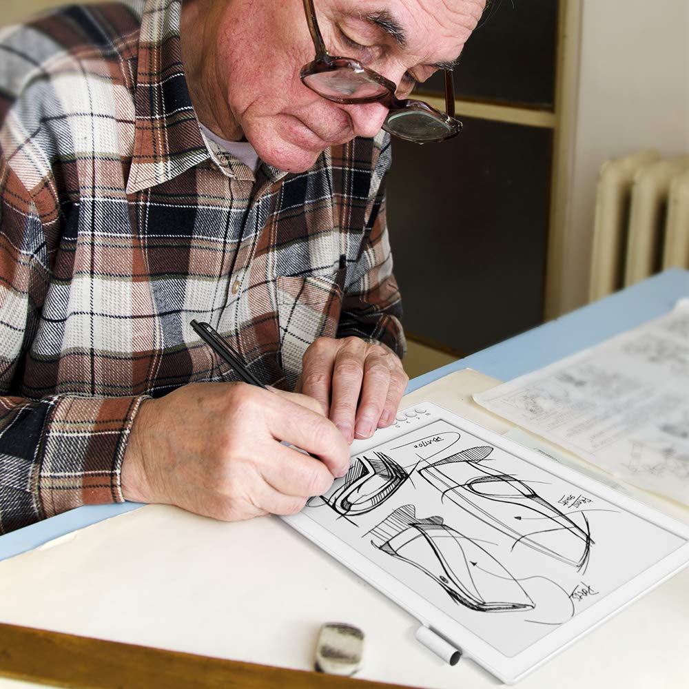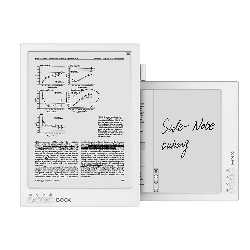 Boox Max2 Proは、質量約550g、厚さ約7.5mmで、A4相当の13.3インチ(2200×1650ドット)のEInkパネルを用いたAndroid6.0タブレットです。パネルがE-inkのため文字が非常に読みやすいのが特徴。また4096段階の筆圧感知及び傾き検知機能を持つワコムスタイラスの採用により、滑らかな描き心地を実現しています。RAMが4GB、ROMが64GBとストレージも十分な容量です。